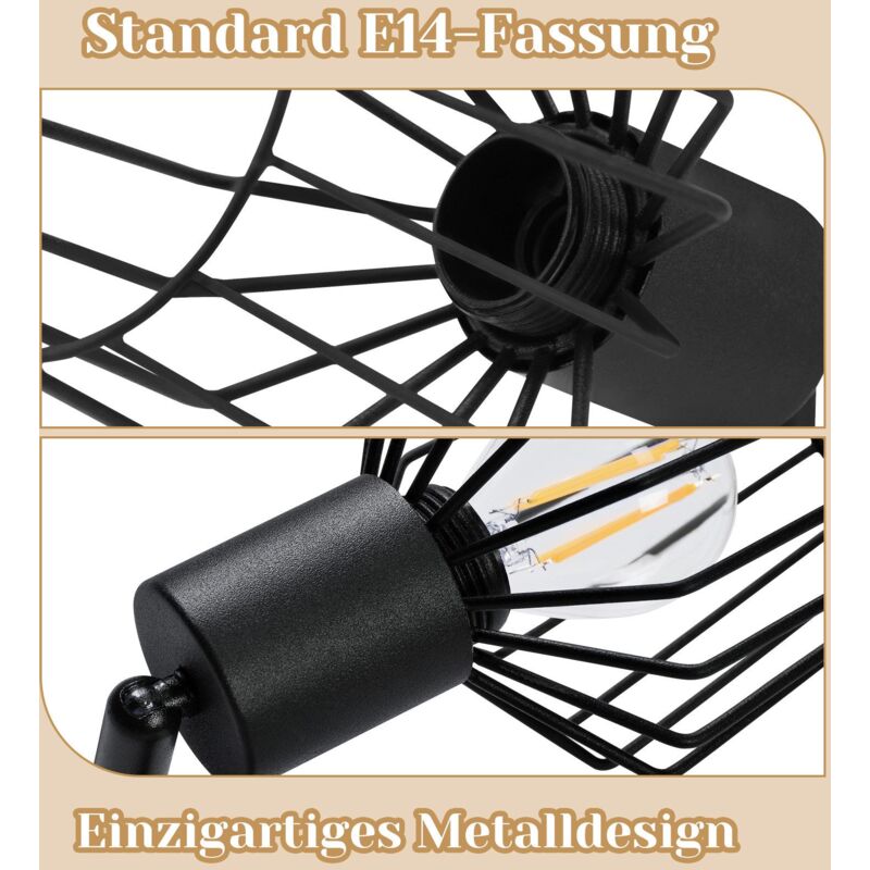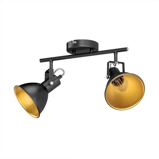 Apportez une touche d'élégance rétro-moderne à votre intérieur avec ce plafonnier RISI à deux spots. Design soigné : structure en métal noir mat à l'extérieur, avec des abat-jour intérieurs dorés qui diffusent une lumière chaleureuse. Les deux spots sont entièrement orientables (rotation 330°, inclinaison 60°), pour diriger la lumière exactement où vous en avez besoin. Livré avec 2 ampoules LED E14 de 452 lumens chacune (blanc chaud), économiques et longue durée. Installation simple sur votre plafond. Parfait pour illuminer une entrée, un salon, un couloir ou même un coin bureau. Son style discret s'intègre dans de nombreux décors, du vintage au contemporain. Un luminaire à la fois fonctionnel et décoratif, qui offre une belle qualité d'éclairage sans consommer beaucoup.