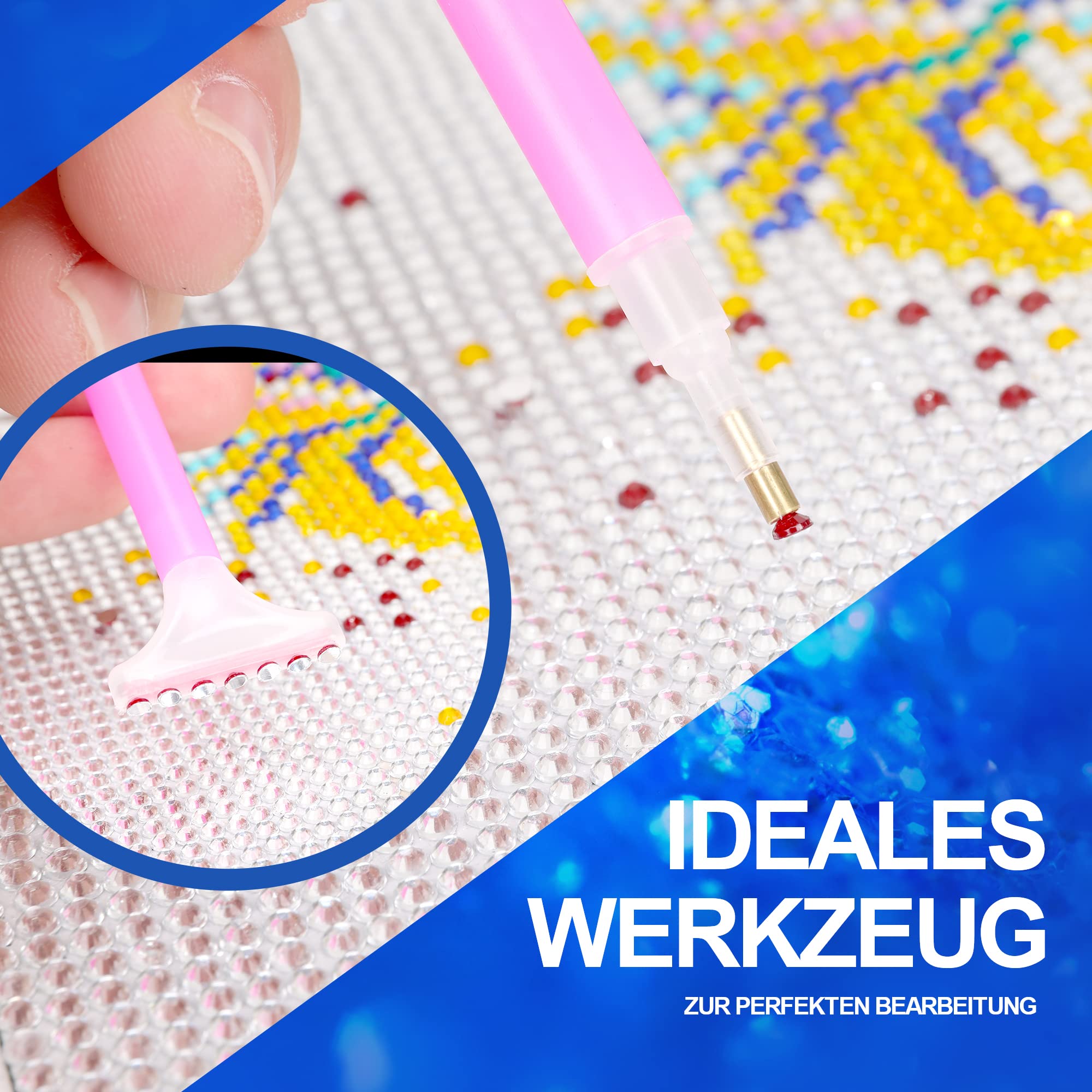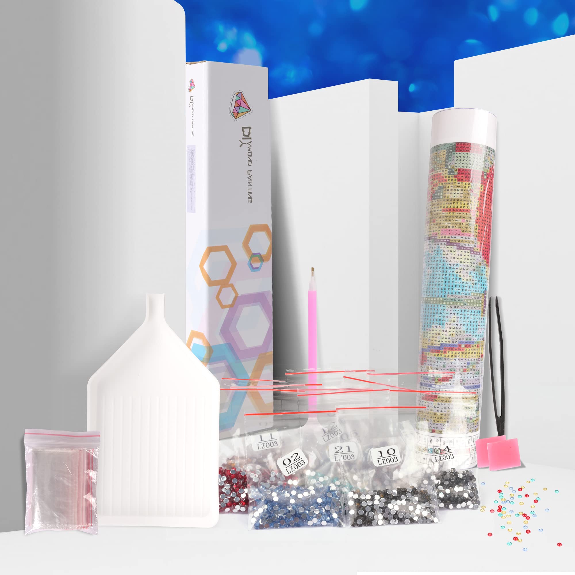 Tu reçois tout le nécessaire : les diamants (30 à 40% en plus que certains kits), un stylet, de la cire, un plateau et même un sac de rangement. Les diamants sont ronds, à 26 facettes, et brillent vraiment. La toile est imperméable et l'adhésif est fort – une fois fini, ton œuvre peut durer plus de 20 ans.