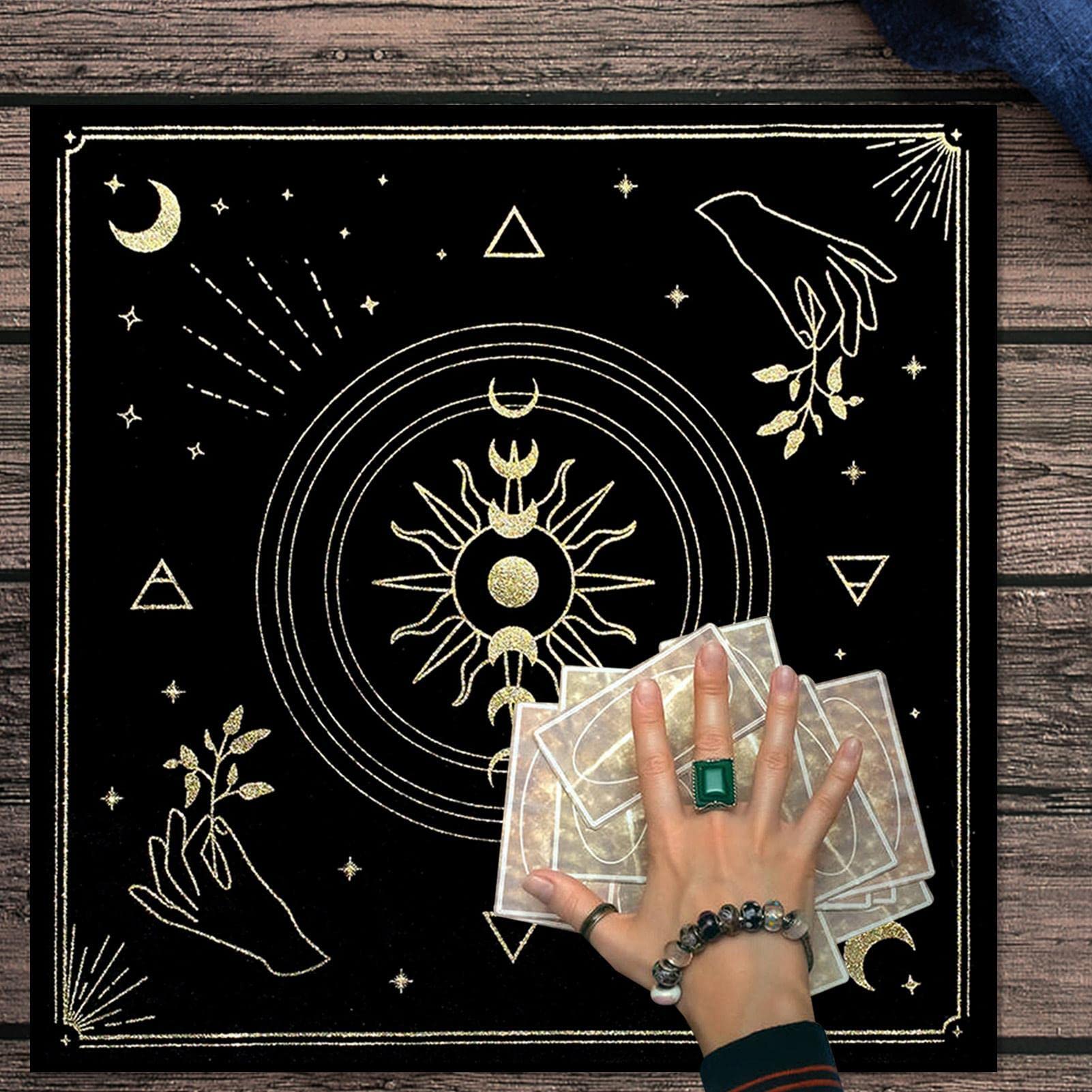 Tu pratiques le tarot, l'astrologie ou tu aimes simplement les jeux de cartes ? Ce tapis en velours est un accessoire magnifique et utile ! Dimensions : 75 x 75 cm, assez grand pour étaler tes cartes confortablement. Il est imprimé avec les 12 signes du zodiaque et des motifs mystiques – un design vraiment captivant. En tissu doux et durable (soie courte), il offre une surface lisse qui protège tes cartes et facilite les tirages. Léger et pliable, tu peux l'emporter partout : en soirée, en rendez-vous, en voyage… Il sert aussi de décoration dans ta chambre ou ton espace de méditation. C'est un cadeau parfait pour un amateur de tarot, pour un anniversaire, Noël ou une occasion spéciale. Utilisable aussi pour d'autres jeux de société ou comme nappe d'appoint. Un objet qui allie esthétique et fonctionnalité, pour ajouter une touche magique à tes séances !