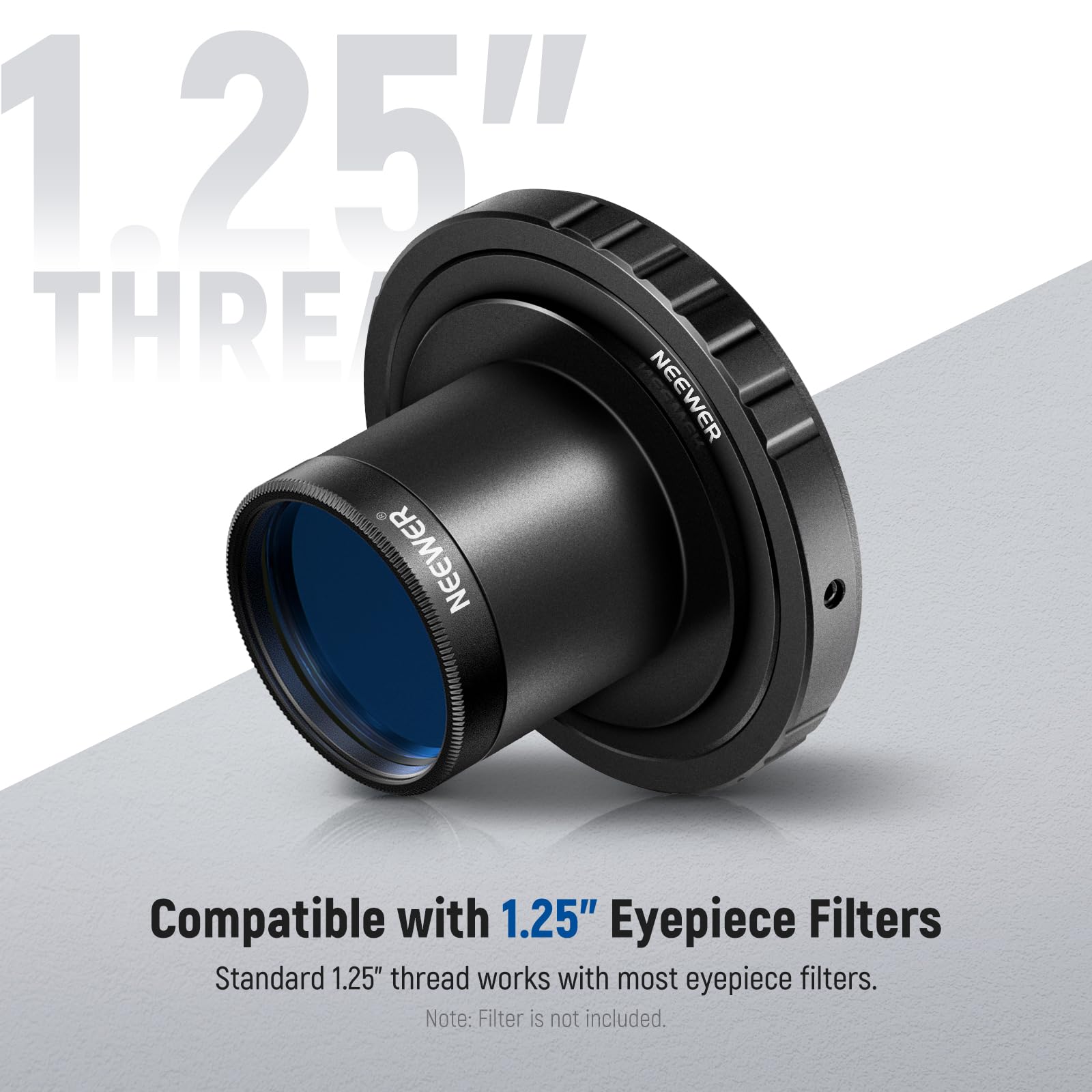 Idéal pour la photographie à mise au point directe : tu fixes ton reflex sur le télescope et tu captes le ciel profond sans intermédiaire. Poids léger : environ 69 grammes.