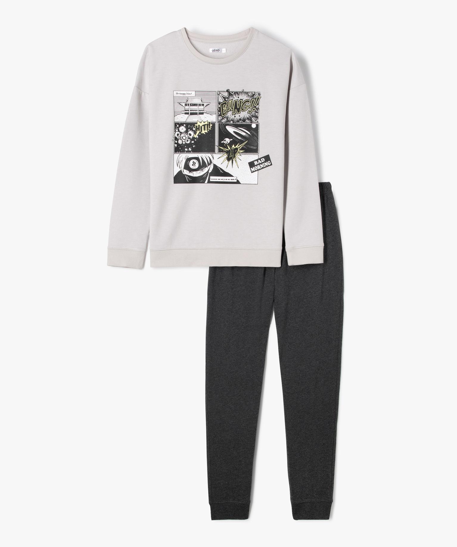 Ensemble Pyjama Bébé 2 Pièces 100% Coton - T-shirt Manches Longues Et Pantalon, Motif Moto Gris, Taille 110cm