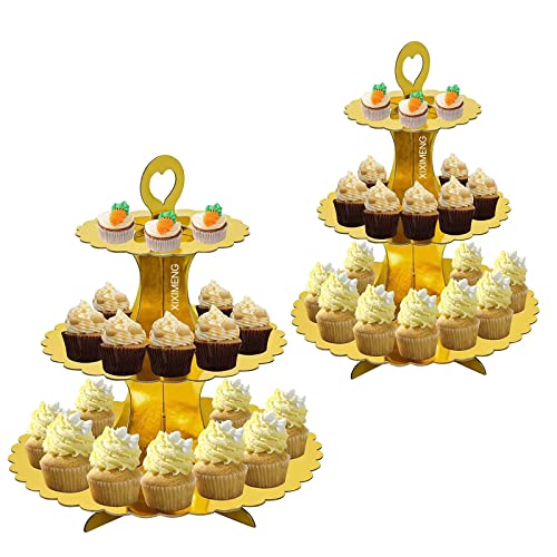 Supports à Gâteaux En Carton 3 Niveaux - Lot De 2 Pour Anniversaire, Noël, Mariage - Présentation Cupcakes, Desserts