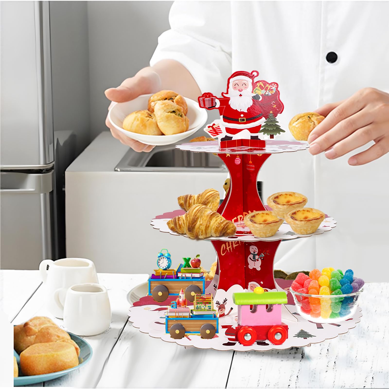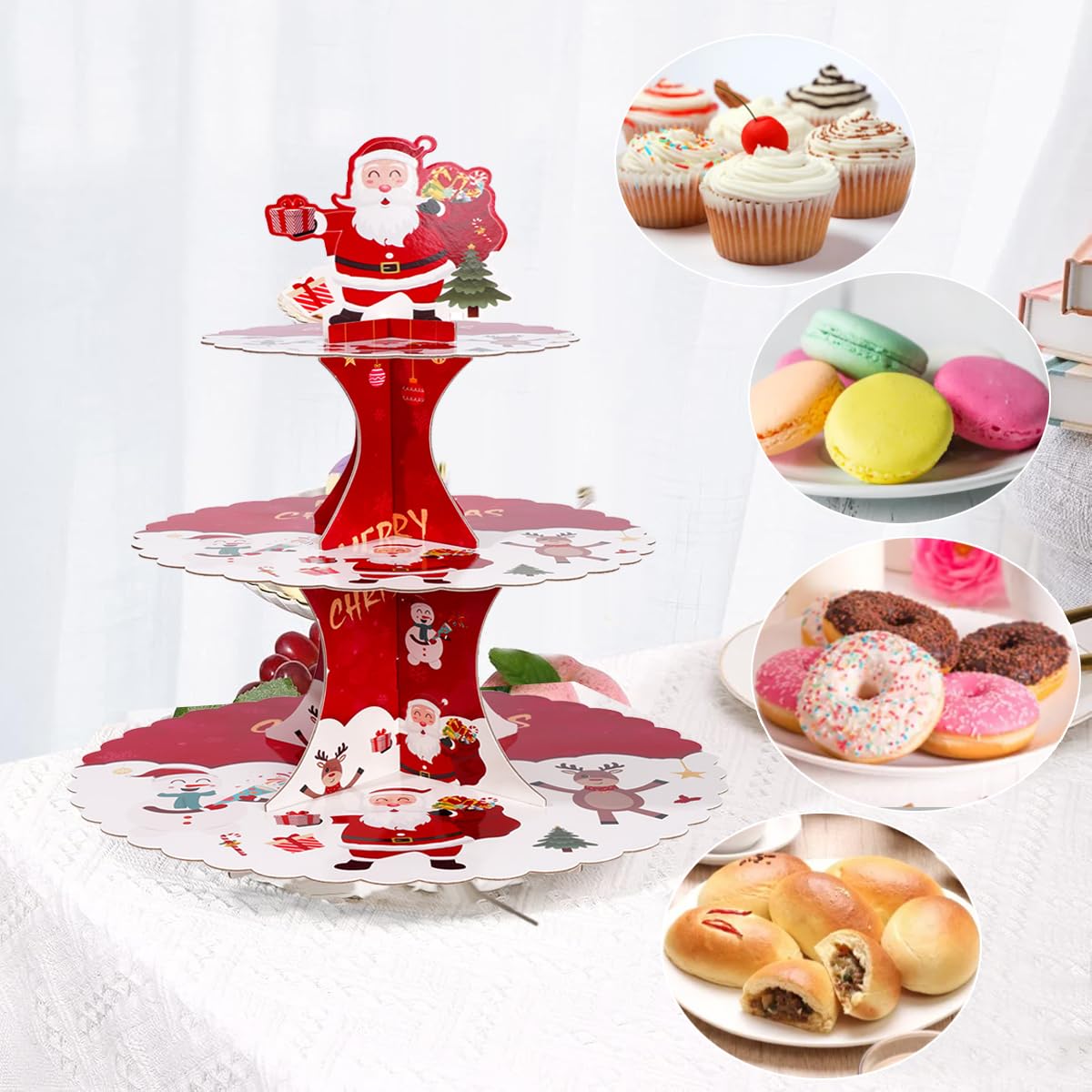 Acheter Support Pâtisserie Noël Supports à Gâteaux En Carton 3 Niveaux - Lot De 2 Pour Anniversaire, Noël, Mariage - Présentation Cupcakes, Desserts Support Gâteau étagère Carton Solide