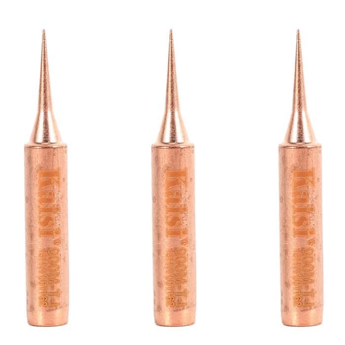Vous bricolez en électronique et votre pointe de fer à souder est usée ou oxydée ? Ce lot de 10 pointes de rechange en cuivre sans oxygène est exactement ce qu’il vous faut ! Conçues pour les stations de soudage populaires comme les modèles 936 et 937 (et autres similaires), ces pointes ont une forme pointue en aiguille, idéale pour les travaux de précision : souder de petits composants SMD, retoucher des connexions fines, travailler sur des circuits imprimés serrés… Le cuivre sans oxygène est un matériau de qualité, qui conduit bien la chaleur et résiste mieux à l’oxydation que le cuivre ordinaire. Chaque pointe est traitée pour durer longtemps – avec une bonne utilisation (nettoyage régulier sur une éponge humide, étamage pour protéger la surface), elles peuvent tenir des milliers de soudures. Le lot de 10 permet d’en avoir en réserve ou d’en utiliser plusieurs selon le type de travail (on peut en dédier une à l’étain sans plomb, une autre avec plomb, etc.). L’installation est simple : on desserre la vis de la panne, on retire l’ancienne pointe, on insère la nouvelle et on resserre. Un accessoire basique mais essentiel pour tout amateur ou professionnel de la soudure, qui veut maintenir la performance de son équipement sans dépenser une fortune. Des pointes fiables pour un travail soigné !