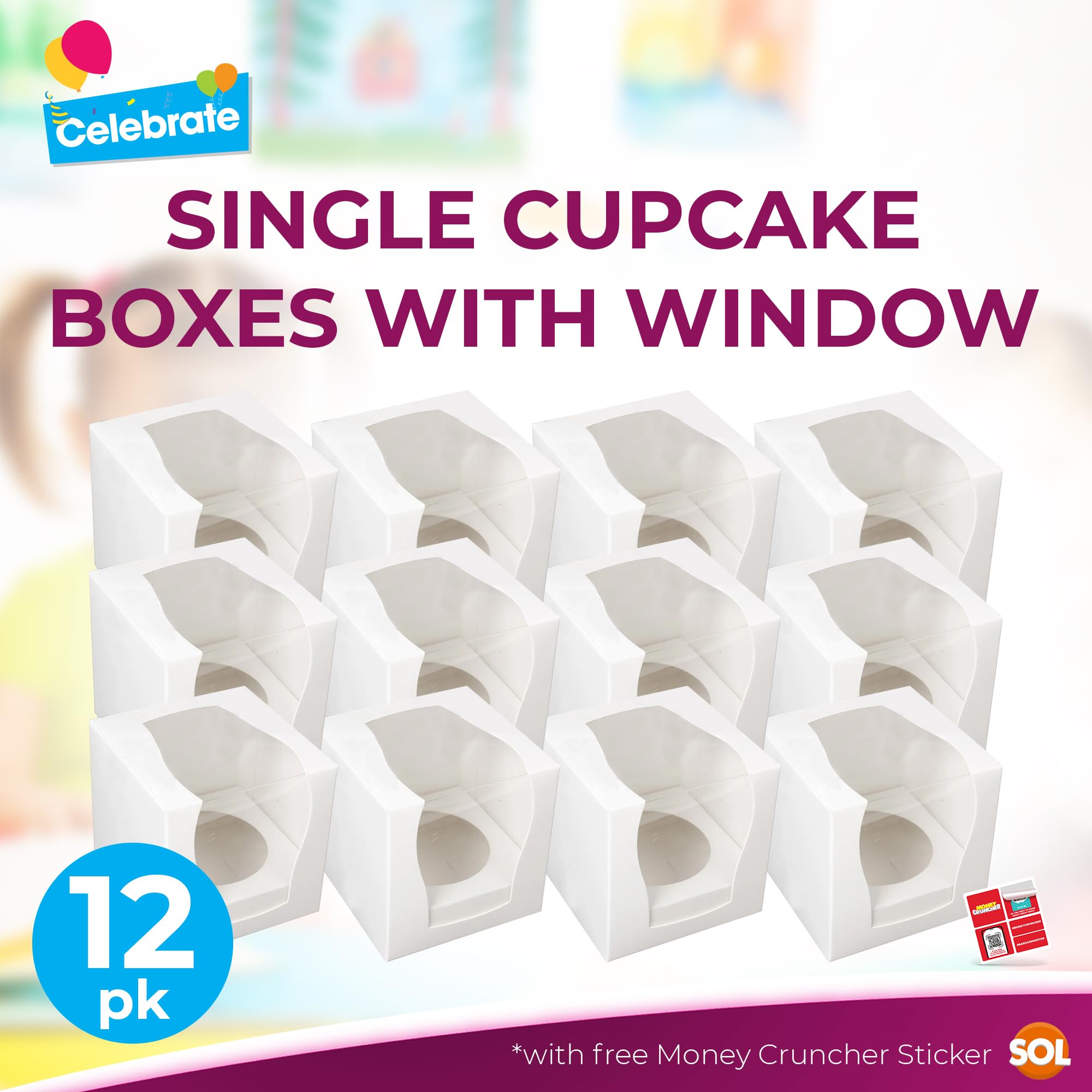 SOL - Lot De 12 Boîtes à Cupcakes Individuelles Carrées Avec Fenêtre - 9x9x9 Cm - Idéal Fêtes, Anniversaires, Mariages