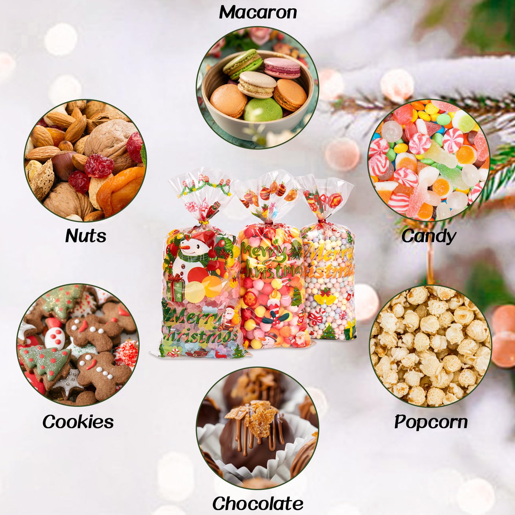 100 Sachets Transparents Avec Attaches Pour Noël - Idéal Biscuits, Bonbons, Cadeaux (13x27 Cm)