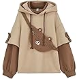 Promotion Sweat Poche Chat Sweat à Capuche Femme EGSDMNVSQ - Style Gothique Kawaii Vintage - Fermeture éclair - Coupe Oversize - Marron Vetement E-girl Streetwear