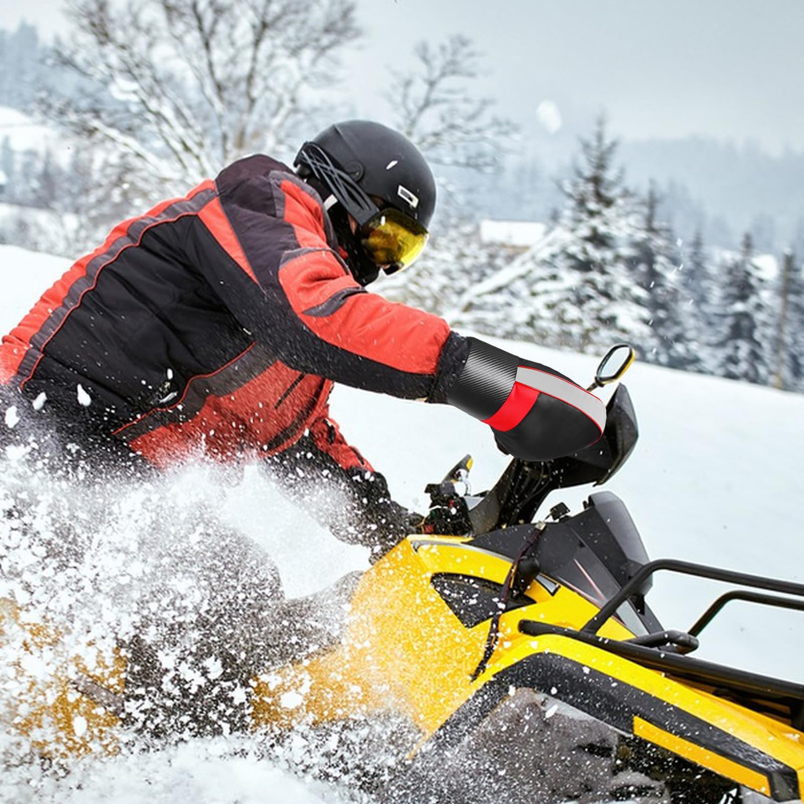 Tu fais de la moto, du scooter ou de la motoneige, même quand il fait un froid de canard ? Ces manchons de guidon sont tes meilleurs alliés ! Ils enveloppent complètement tes mains et le guidon pour te protéger du vent, de la pluie et de la neige. Fabriqués avec une couche extérieure imperméable, une couche intermédiaire en microfibre polyester épaisse et une doublure intérieure en velours chaud, ils gardent tes mains au sec et au chaud. Les poignets élastiques coupe-vent et la bande réfléchissante améliorent la sécurité de nuit. Avec une grande ouverture de 24 cm et un cordon de serrage réglable, ils s'adaptent à la plupart des modèles de guidon. Dimensions : environ 42 x 23 cm. Super faciles à installer et à retirer, ils te permettent de conduire confortablement même par temps hivernal rigoureux. Plus besoin de gants gelés ou mouillés ! Parfaits pour les trajets quotidiens, les balades ou les activités neigeuses.